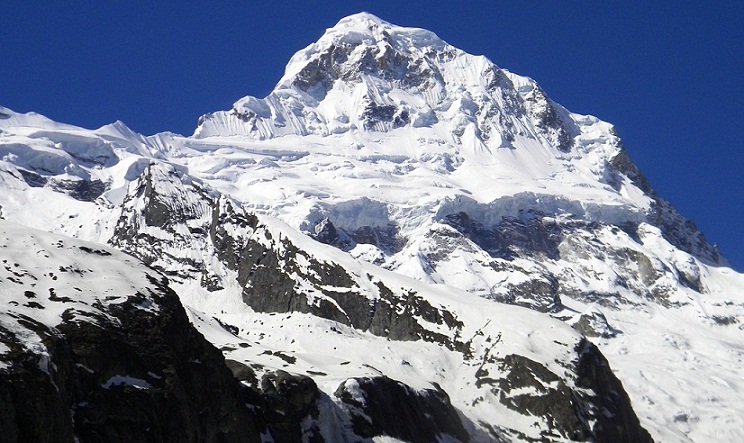 सतोपंथ ग्लेशियर तथा भागीरथी खरक ग्लेशियर के समागम से नीलकंठ पर्वत का एक द्रस्य